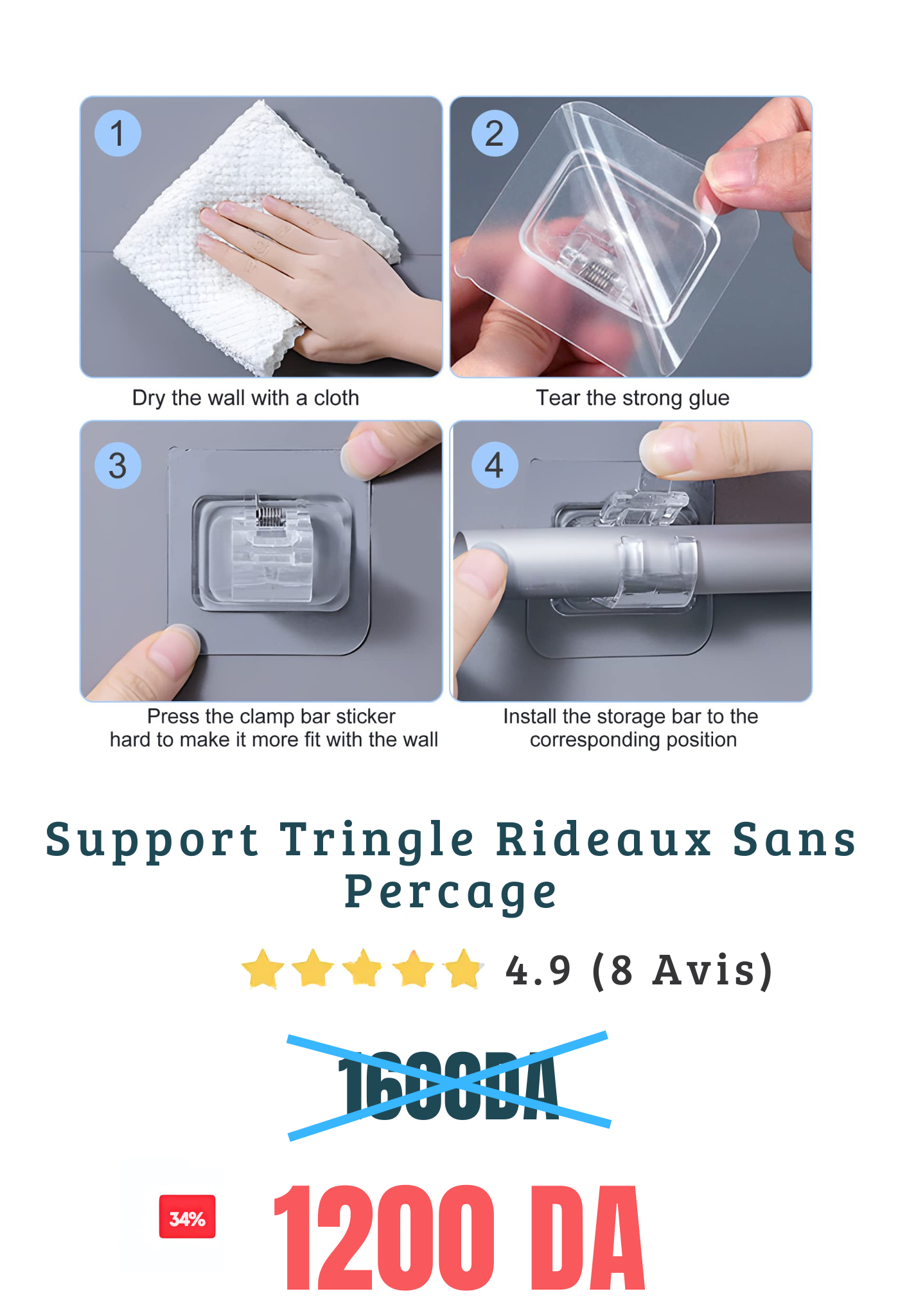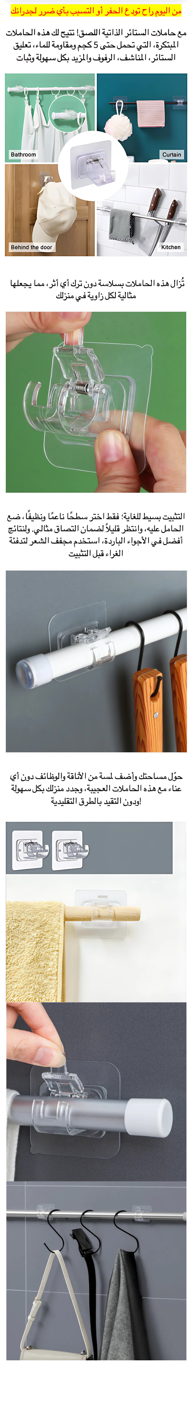 حامل الستائر بدون ثقوب